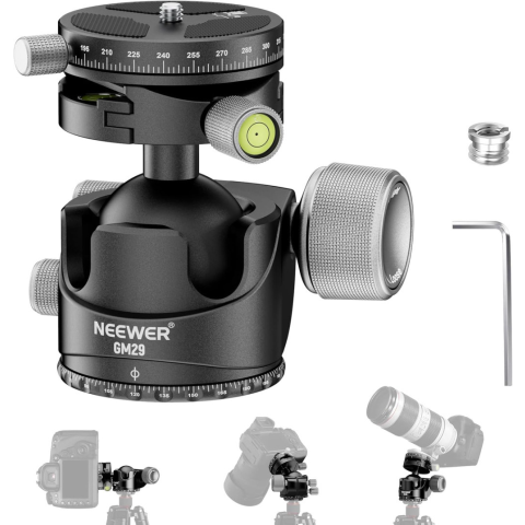 Neewer Alacsony Profilú Gömbfej Csillapítással 2 360°-os Panoráma Szerkezettel Arca Lemez és Alap Erősebb Gömbfej Állványhoz Monopodhoz Kamerához Maximum 25 kg Terhelhetőség A Neewer Alacsony Profilú Gömbfej Csillapítással egy kiváló minőségű, erősebb kon