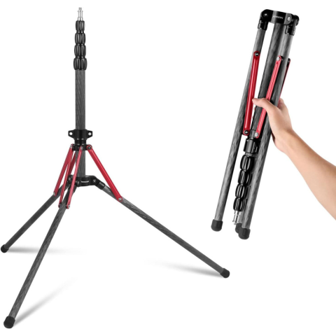 NEEWER Szénszálas Light Stand hordozható állvány A NEEWER szénszálas light stand tökéletes megoldást nyújt a kültéri fotózáshoz, rendkívüli stabilitással és rugalmassággal. A 180°-ban megfordítható lábak és az 1/4 hüvelyk-3/8 hüvelyk csavaros adapter lehe