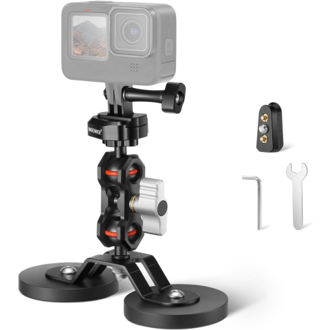 NEEWER Mágneses Akció Kamera Tartó Kettős 1/4 Hüvelykes Gömbfejjel A NEEWER mágneses akció kamera tartó kettős 1/4 hüvelykes gömbfejjel kiváló megoldás az akciókamerák stabil és biztonságos rögzítésére. A rugalmas és könnyen használható kialakítás lehetőv