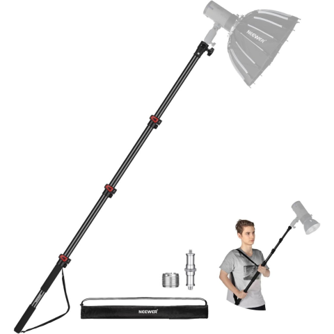 NEEWER 230 cm-es Boom Rúd Állvány A NEEWER 230 cm-es boom rúd állvány kiváló megoldás a professzionális fotósok és videósok számára, akik a stabilitást és a rugalmasságot keresik a felvételeikhez. Az alumínium anyag biztosítja a könnyű súlyt és a tartóssá