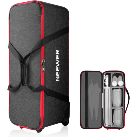 1 kép    Neewer Stúdióeszköz Hordtáska -Gurulós Bőrönd Fekete/ Piros (88x25x35 cm)