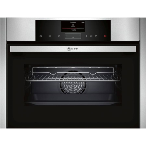 Technikai információk Sütőtípus / Sütési módok Kompakt gőzsütő 12 sütési funkcióval: CircoTherm®, Circo Therm eco, Alsó/felső sütés, Alsó/felső sütés eco, Circo Roasting, Nagy felületű grill, Középső grill, Circo Therm intensive, Kenyérsütési fokozat, Alsó sütés, Kímélő párolás, Melegen tartás További funkciók gőzzel: Gőzölés, Regenerálás, Forralás, Felolvasztás Pontos hőfokszabályozás: 40 °C - 250 °C Sütőtér térfogata: 47 l Design Shift Control kezelőfelület Belső tér bevonata: antracit zománc Tisztítás Eco Clean öntisztítás: hátfal Tisztítási segéd Teleüveg sütőajtó Komfort 4,1" TFT színes kijelző érintésvezérléssel Hőmérséklet beállítási javaslatok Aktuális hőmérséklet-kijelzés Felfűtés-ellenőrzés Automata programok Sabbath beállítás További funkciók: Vízkőtlenítő program Automatikus forráspont-ellenőrzés Szárító funkció Alsó rögzítésű sütőajtó, SoftClose csillapított záródás, SoftOpen csillapított nyitás Sütést támogató rendszer: Beállítási javaslatok, Automata programok Automata programok száma: Automata programok száma: 38 Elektronikus óra Gyors felfűtés LED világítás, kikapcsolható Víztartály: 1 l Víztartály telítettség-kijelzéssel Gőzfejlesztés a párolótéren kívül Hűtőventilátor Nemesacél ventilátor Információs gomb Egyenes fogantyú Kihúzó-rendszer Tepsi-tartó állvánnyal, Nagyméretű sütő tepsitartó állvánnyal Tartozékok 1 x párolóedény, perforált, S méret, 1 x párolóedény, perforált, XL méret, 1 x párolóedény, perforálatlan, S méret, 1 x Rostély, 1 x Univerzális serpenyő Környezet és biztonság Egyedileg állítható gyerekzár Sütő biztonsági lekapcsoló Maradékhő kijelzés Start/Stop gomb Nyitott ajtó érzékelés Műszaki adatok Hálózati kábel hossza: 150 cm Maximális teljesítményfelvétel: 3.3 kW Készülék méretei (ma x sz x mé): 455 mm x 596 mm x 548 mm Beépítési méretigény (ma x szé x mé): 450 mm - 455 mm x 560 mm - 568 mm x 550 mm "Kérjük vegye figyelembe a beépítési rajzon feltüntetett méreteket" Energiahatékonysági besorolás (az EU 65/2014 rendelete alapján): A+ (A+++-tól D-ig terjedő skálán) Egy ciklusra vonatkoztatott energiafelhasználás hagyományos üzemmód esetén: 0.73 kWh Egy ciklusra vonatkoztatott energiafelhasználás légkeveréses üzemmód esetén: 0.61 kWh Sütőterek száma: 1 Hőforrás: elektromos Sütőtér térfogata: 47 l