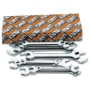 Csillag-villáskulcs, CrV acél, DIN 3113, présminta, szatén felületkikészítés, polírozott, 15°-ban hajlított fej