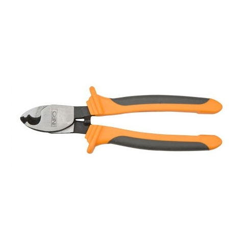 NEO kábelvágó fogó réz és alumínium kábelekhez, a DIN 5749 szabvány szerinti kivitelben. Az edzett pofák max. 10 mm átmérőig képesek vágni. A kiváló minőségű króm-vanádium acél sokéves tartósságot biztosít a pofáknak. Az ergonómikus bimateriál markolat nö