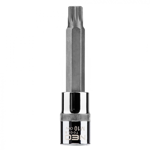 A Neo ½-os Spline dugókulcs króm-vanádium acélból készül, 100mm HOSSZÚ, DIN 3124 . A dugókulcs szferikus kialakítása igen széles alkalmazási lehetőségeket biztosít, lehetővé téve a Torx, a Spline, a 12-lapú, a metrikus, a colos és a négylapú csavarok kics