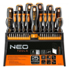 NEO csavarhúzó és csavarhúzó bit készlet, 37 db-os, S2 acél, mágneses csavarhúzó hegy, háromszög keresztmetszetű markolat, formatervezett hüvelyktámasz, vegyszer-, ásványolaj- és kenőanyagálló, TPR műanyaggal borított markolat, méretek: lapos 8x150 mm, 6x