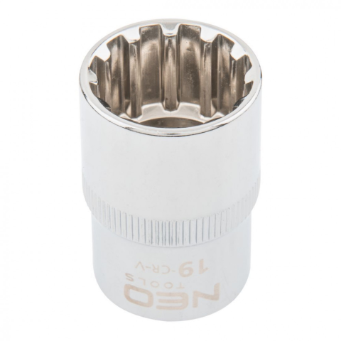Gyártói garancia: 25 év.A NEO ½-os Spline dugókulcs króm-vanádium acélból készül, a DIN 3124 szabványnak megfelelően. A dugókulcs szferikus kialakítása igen széles alkalmazási lehetőségeket biztosít, lehetővé téve a Torx, a Spline, a 12-lapú, a metrikus,