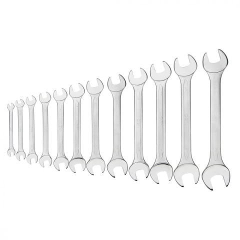 NEO kétvégű villáskulcs készlet népszerű méretű kulcsokat tartalmaz, a kulcsok a DIN 3110 szabványnak megfelelően készülnek. A kiváló minőségű króm-vanádium acél sokéves tartósságot biztosít a kulcsoknak. A kulcsok praktikus, kulcsméreteket feltüntető tok