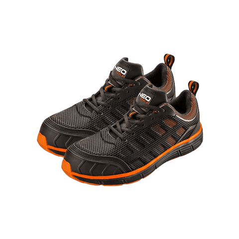 A NEO munkavédelmi félcipő (cikkszám: 82-096, méret 45) alapvető védőeszköz a munkavégzéshez. Felsőrésze légáteresztő, műanyag hálóval borított anyagból készül. Csúszásmentesített talpa gumival borított EVA hab, ami kiváló kényelmet és hatékony rezgéscsillapítással járul hozzá a biztonsághoz és a viselési komforthoz. A műanyaggal megerősített orr és sarok véd a sérülések ellen. A lábbeli belső részének puha kikészítésének köszönhetően ma