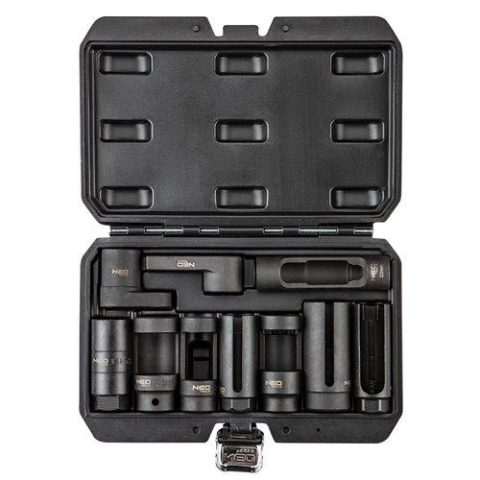 Lambda szonda és injektor csatlakozók NEO injektor és lambdaszonda szerelő készlet, 10 db-os. Speciális dugókulcsok lambdaszondákhoz és injektorokhoz. Lehetővé teszi a különböző típusú lambdaszondák és injektorok szervizelését a népszerű márkák au
