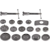 Kézi tárcsafék szerelő készlet, 18 db-os (jobb- és balmenet) NEO tárcsfék munkahenger visszanyomó készlet. A 18 darabos készlet, jobb és balmenetes kézi préseket és különböző méretű nyomótányérokat tartalmaz. Lehetővé teszi a fékbetétek, tárcsák c