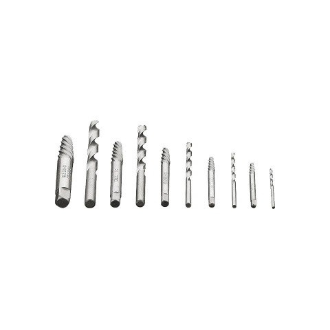Törtcsavarkiszedő készlet vezetőfúrókkal, 10 db-os, méretek: 2 mm, 3 mm, 4 mm, 6,5 mm, 7,5 mm, CrMo acél