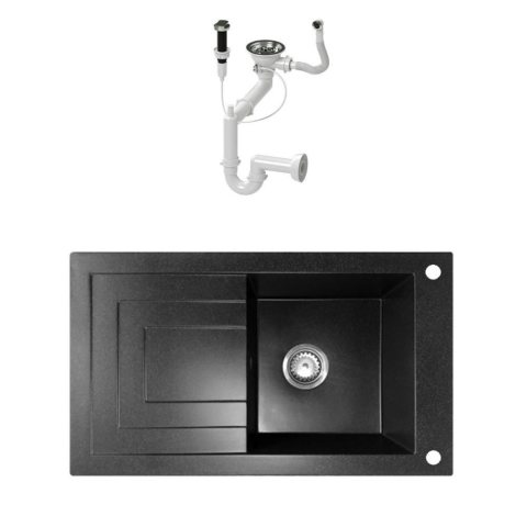Teljes Nero Cortina Gránit mosogató + dugóemelő (fekete) termékleírás