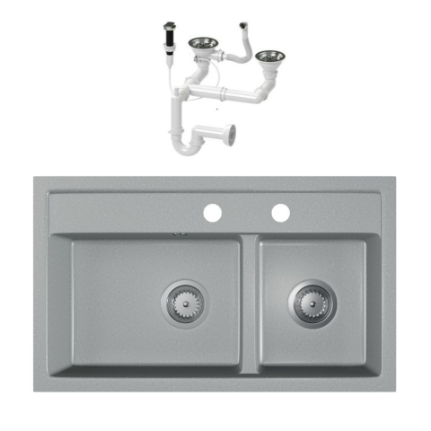 1 kép Nero Evinion Double I74-44SZM Gránit Mosogató + dugóemelő (matt szürke)