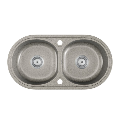 Harmonikus, ovális alakú dupla medencés gránit mosogató, ami egyszerre helytakarékos és jól használható a mosogatás során. Beépíthető 75 cm széles vagy annál szélesebb mosogató szekrényekbe.Összetétele 80% gránit őrlemény és 20% akril, ami megfelel a szab