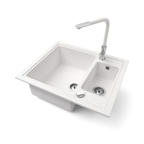 Nero Gránit mosogató NERO Arriva + kihúzható fejes Linea csaptelep + dugókiemelő (fehér) mosogatótálca termékleírás