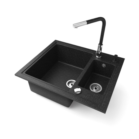 Nero Gránit mosogató NERO Arriva + kihúzható Linea csaptelep + adagoló + dugókiemelő (fekete) mosogatótálca termékleírás