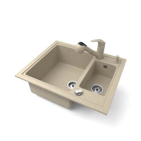 1 kép Nero Gránit mosogató NERO Arriva + Kihúzható zuhanyfejes Shower csaptelep + adagoló + dugókiemelő (bézs)