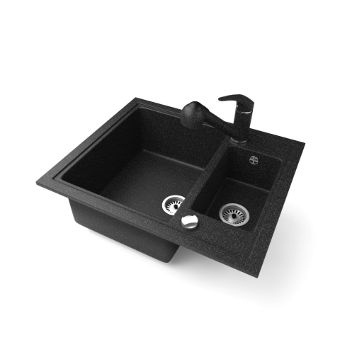 Nero Gránit mosogató NERO Arriva + kihúzható zuhanyfejes Shower csaptelep + dugókiemelő (fekete)