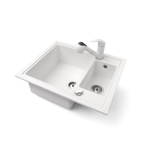 Nero Gránit mosogató NERO Arriva + kihúzható zuhanyfejes Snake csaptelep + dugókiemelő (fehér) mosogatótálca termékleírás