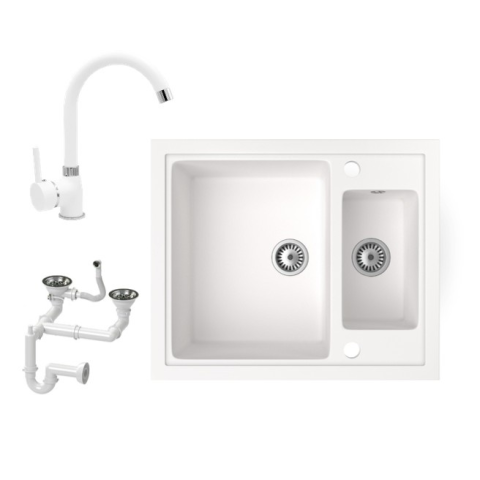 Teljes Nero Gránit mosogató NERO Arriva + magasított csaptelep (fehér) termékleírás
