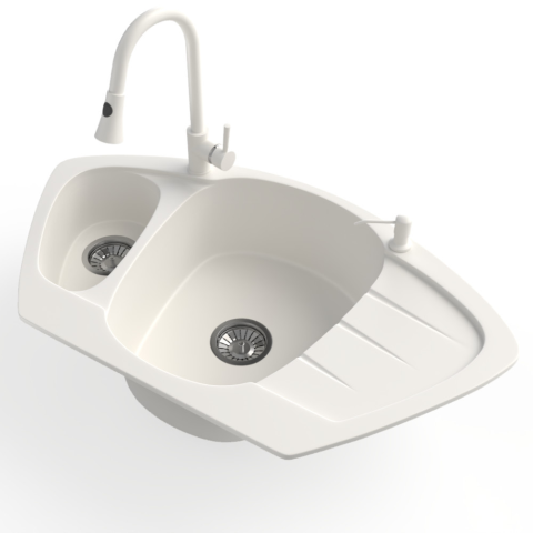 Nero Gránit mosogató NERO Compact + kihúzható zuhanyfejes Snake csaptelep + adagoló (fehér) mosogatótálca termékleírás