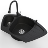 Nero Gránit mosogató NERO Compact + kihúzható zuhanyfejes Snake csaptelep + adagoló (fekete) mosogatótálca 1 kép