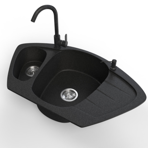 Teljes Nero Gránit mosogató NERO Compact + magasított csaptelep + adagoló (fekete) termékleírás