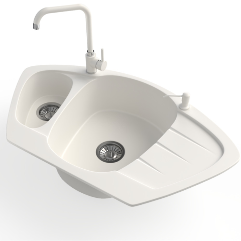 Nero Gránit mosogató NERO Compact + Steel csaptelep + adagoló (fehér) mosogatótálca termékleírás