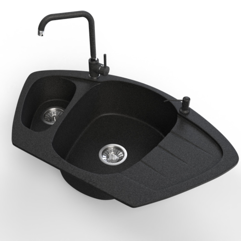 Teljes Nero Gránit mosogató NERO Compact + Steel csaptelep + adagoló (fekete) termékleírás