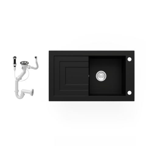Nero Gránit mosogató NERO Cortina + dugóemelő (fekete matt)