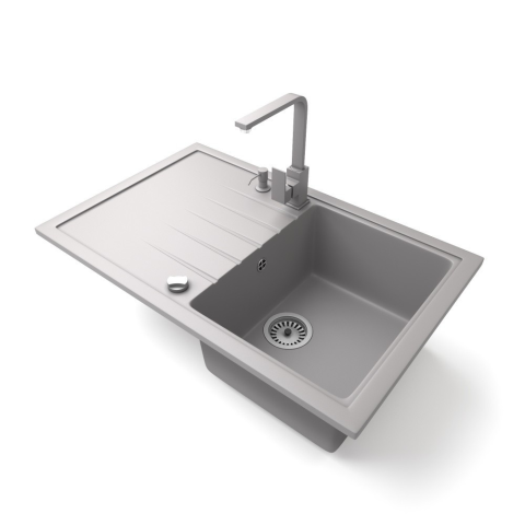 Nero Gránit mosogató NERO Eris + Design csaptelep + adagoló + dugókiemelő (szürke) mosogatótálca termékleírás