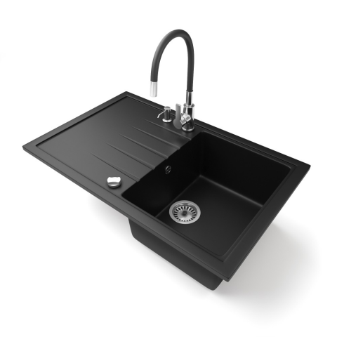 1 kép Nero Gránit mosogató NERO Eris + flexibilis csaptelep + dugókiemelő (matt fekete)