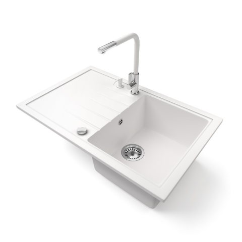 Nero Gránit mosogató NERO Eris + kihúzható Linea csaptelep + adagoló + dugókiemelő (fehér) mosogatótálca termékleírás