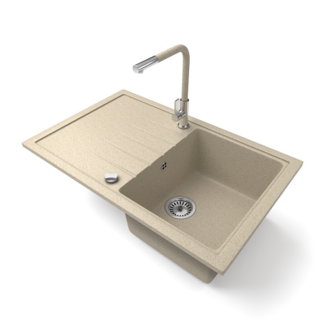 Nero Gránit mosogató NERO Eris + kihúzható Linea csaptelep + dugókiemelő (bézs) mosogatótálca termékleírás