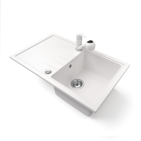 1 kép Nero Gránit mosogató NERO Eris + kihúzható zuhanyfejes Shower csaptelep + dugókiemelő (fehér)