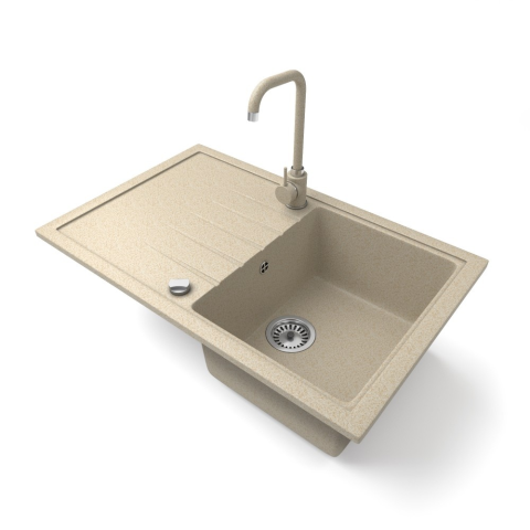 Nero Gránit mosogató NERO Eris + Steel csaptelep + dugókiemelő (bézs) mosogatótálca termékleírás