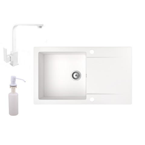 Nero Gránit mosogató NERO Gold + Design csaptelep + adagoló (fehér) mosogatótálca termékleírás