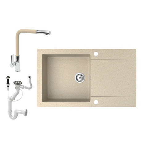 Teljes Nero Gránit mosogató NERO Gold + kihúzható Linea csaptelep + dugókiemelő (bézs) termékleírás