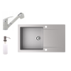 1 kép Nero Gránit mosogató NERO Gold + kihúzható zuhanyfejes Shower csaptelep + adagoló (szürke)