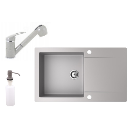 Nero Gránit mosogató NERO Gold + kihúzható zuhanyfejes Shower csaptelep + adagoló (szürke) mosogatótálca termékleírás