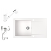 Nero Gránit mosogató NERO Gold + kihúzható zuhanyfejes Shower csaptelep + dugókiemelő (fehér) mosogatótálca termékleírás