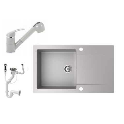 Nero Gránit mosogató NERO Gold + kihúzható zuhanyfejes Shower csaptelep + dugókiemelő (szürke) mosogatótálca termékleírás