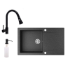 1 kép Nero Gránit mosogató NERO Gold + kihúzható zuhanyfejes Snake csaptelep + adagoló (fekete)