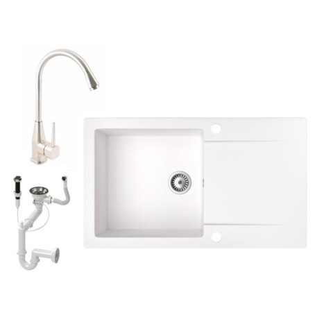 Teljes Nero Gránit mosogató NERO Gold + magasított inox csaptelep + dugókiemelő (fehér) termékleírás