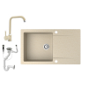 Nero Gránit mosogató NERO Gold + Steel csaptelep + dugókiemelő (bézs)