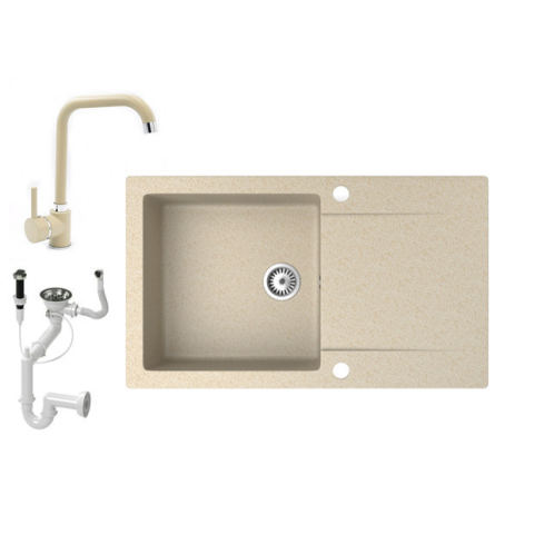 Nero Gránit mosogató NERO Gold + Steel csaptelep + dugókiemelő (bézs) mosogatótálca termékleírás