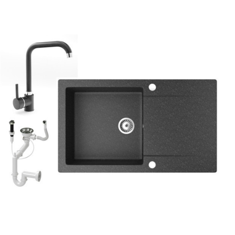 Teljes Nero Gránit mosogató NERO Gold + Steel csaptelep + dugókiemelő (fekete) termékleírás