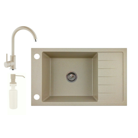 1 kép Nero Gránit mosogató NERO Grande + csaptelep+ adagoló + szifon - bézs