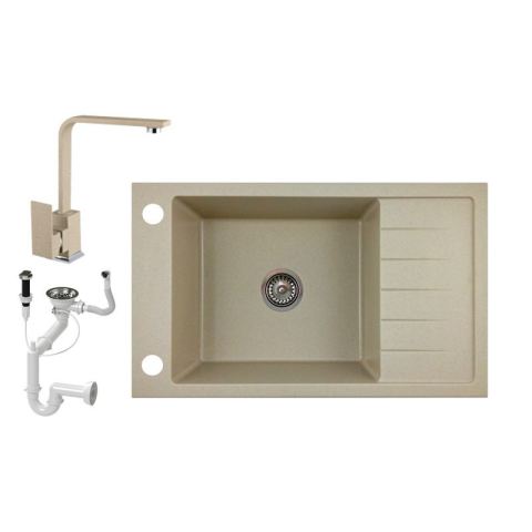 Nero Gránit mosogató NERO Grande + Design csaptelep + dugóemelő (bézs) mosogatótálca termékleírás